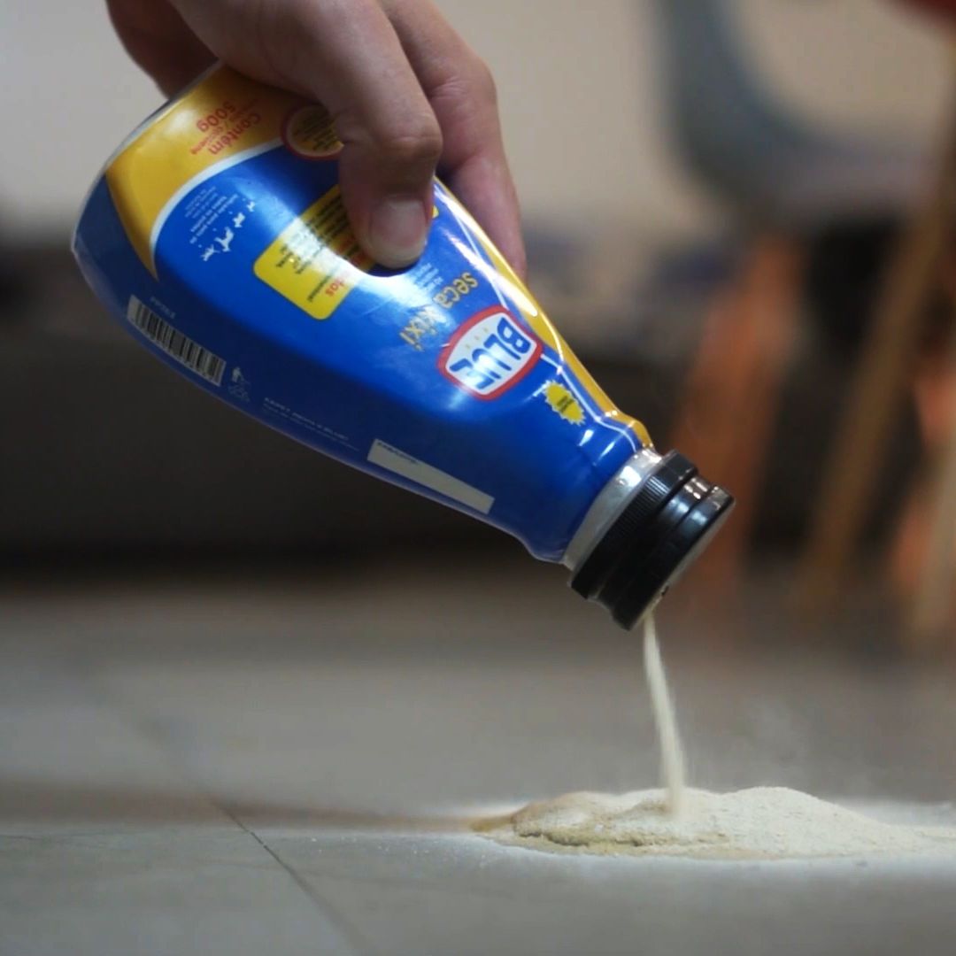para usar Seca Xixi, basta con aplicar el polvo sobre el residuo y esperar 60 segundos hasta que se solidifique y se seque. La cantidad de producto utilizado depende del tipo de líquido a limpiar, ¡el residuo solidificado estará listo para su eliminación cuando ya no se pegue al piso o a la escoba!