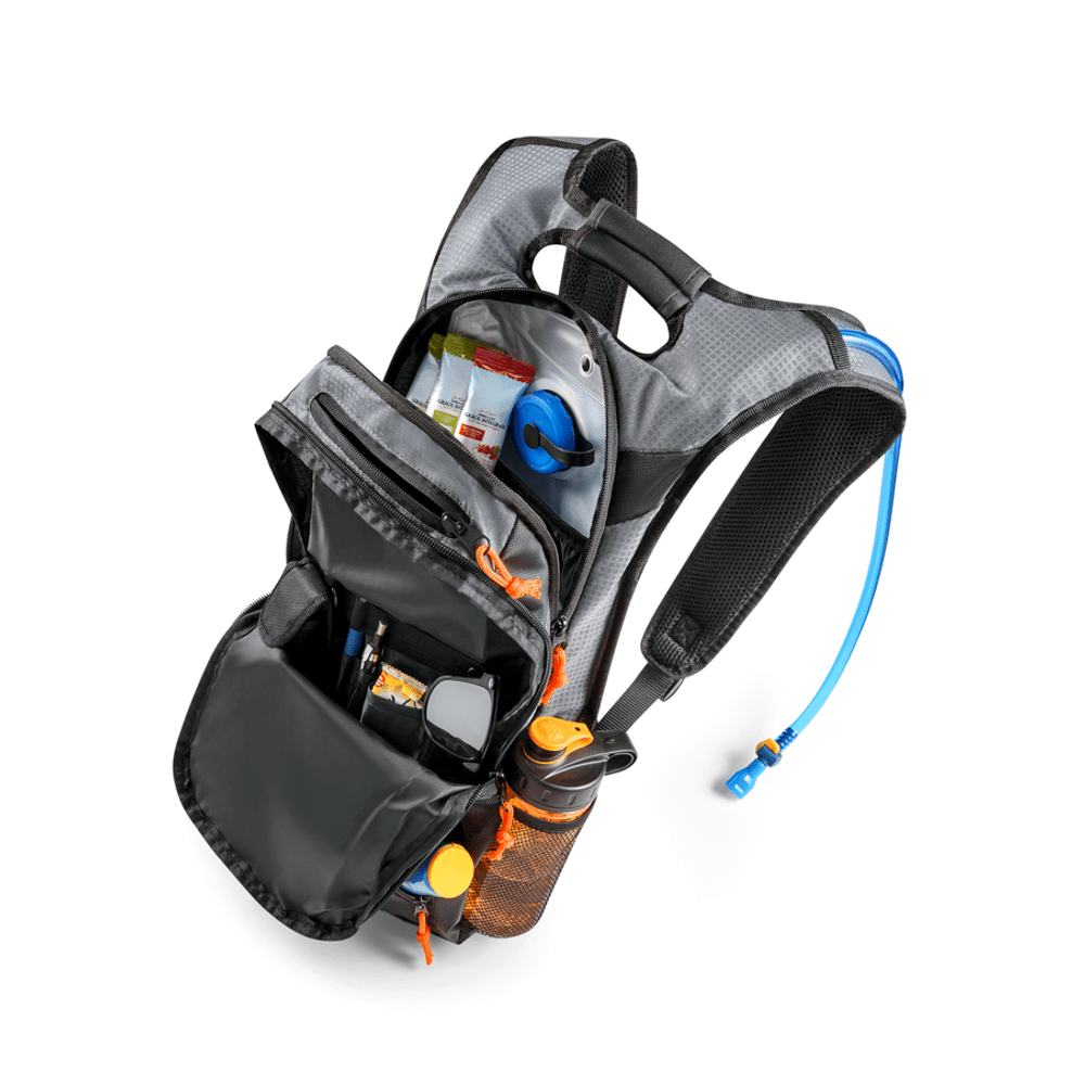 Con una capacidad de 3 litros, la mochila te permitirá hidratarte y guardar tus cosas esenciales, gracias a sus bolsillos externos.
