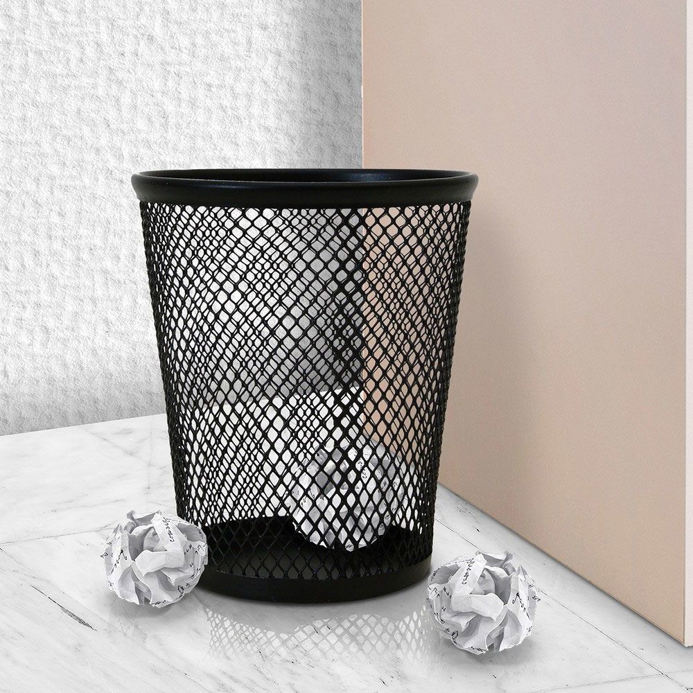 Papelera grande de metal calado Keep, color negro con un diámetro de 26 cm y una altura de 28 cm