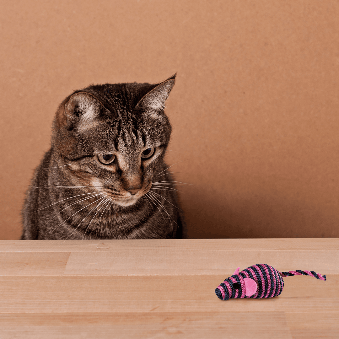 -El Ratón está cubierto de hilos de cuerda que forman una estructura ondulada. La textura despierta el interés y anima a los gatos a jugar. Los materiales de alta calidad no dañan a tu mascota.
