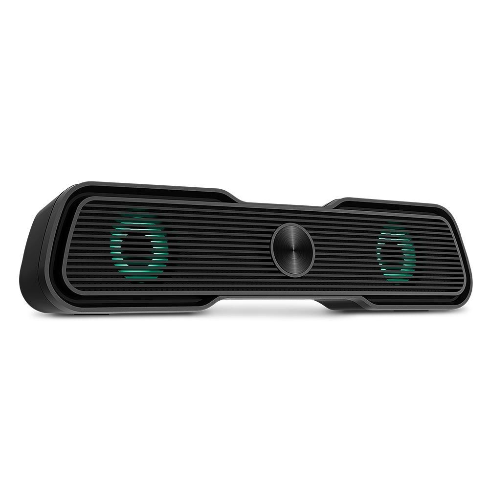 Disfruta de tu música favorita y mejora el sonido de tu juego donde y cuando quieras. Desarrollado con potencia de 15 RMS y con calidad de sonido estéreo, respuesta en frecuencia de 200Hz a 16000kHz. La Soundbar además de ser compacta tiene iluminación LED, solo conéctala a la entrada USB de tu computadora, en la parte de sonido solo conéctala a la conexión P2 que podrás usar, sin necesidad de software.